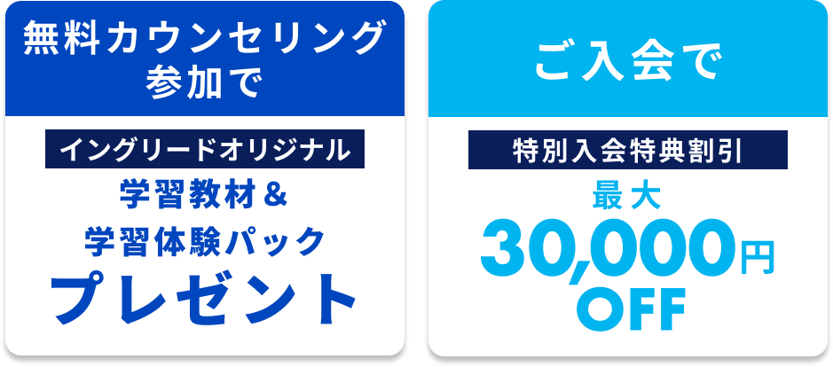 受講生一人ひとりの学習目的やそれぞれの英語レベル、弱点を踏まえて、主に市販教材から選定いたします。イングリード独自の43万通りの学習パターンから、今のあなたにあった教材をオリジナルで選定します。