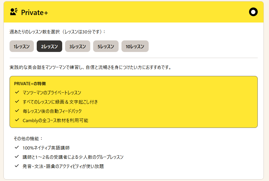 Camblyは月額制で、レッスン時間と週の回数を自由に組み合わせられるのが特徴です。