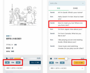 もし音声と同じスピードで話すのが難しい場合は、再生速度を0.8〜0.9倍に下げて練習してみましょう。