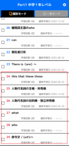 個別モードで学習範囲を選択し、日本語を見て英語を発話します。